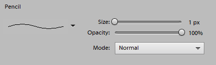 - Chọn Công cụ bút chì và đặt Kích thước của nó thành 1 px và Độ mờ thành 100%