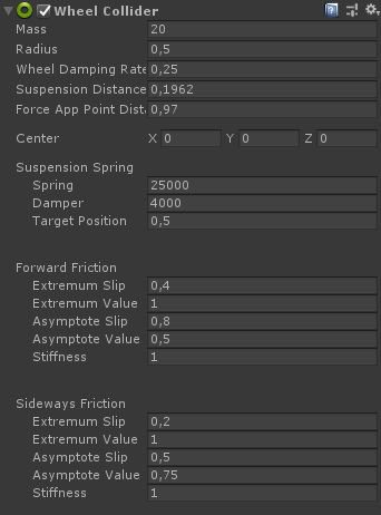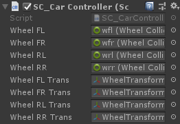 - Gán các đối tượng WheelTransform vào mảng Wheels