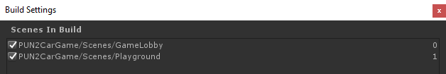 - Thêm cả Cảnh GameLobby và Sân chơi vào cài đặt Bản dựng: