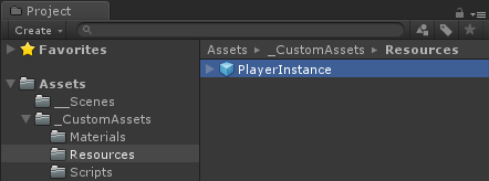 - Lưu PlayerInstance vào Prefab và di chuyển nó vào thư mục có tên Tài nguyên (Nếu không có thư mục đó, hãy tạo một thư mục). Bước này là cần thiết để có thể tạo ra các Đối tượng nhiều người chơi qua Mạng.