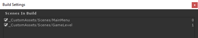 - Thêm cả MainMenu và GameLevel vào Cài đặt bản dựng.