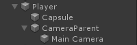 - Tạo một GameObject mới và đặt tên là "CameraParent" và di chuyển nó vào trong Đối tượng "Player", thay đổi vị trí của nó thành (0, 1.64, 0)